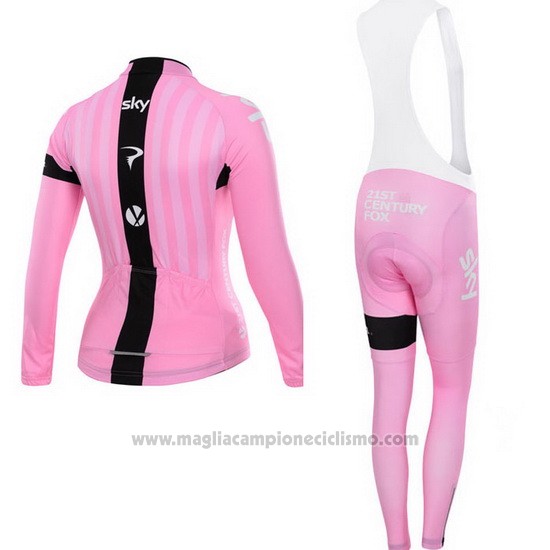 2015 Abbigliamento Ciclismo Donne Sky Fuxia Manica Lunga e Salopette