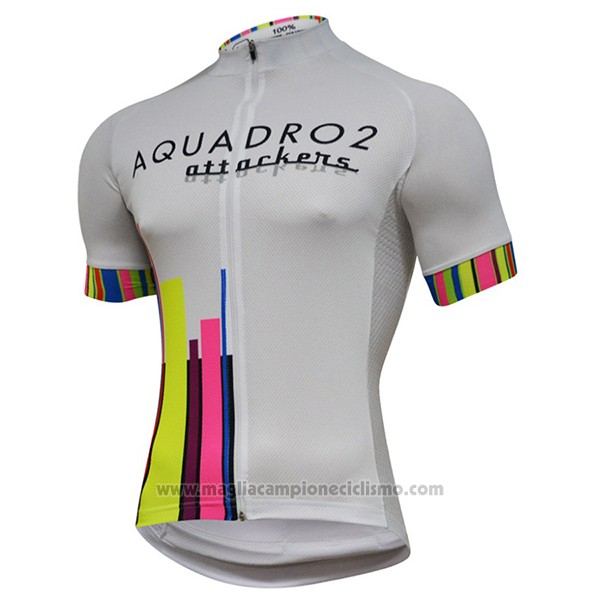 • 2017 Abbigliamento Ciclismo Aquadro Attackers Bianco Manica Corta e Salopette