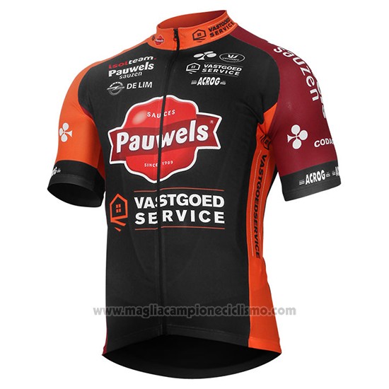 2017 Abbigliamento Ciclismo Pauwels Sauzen Vastgoedservice Nero e Arancione Manica Corta e Salopette